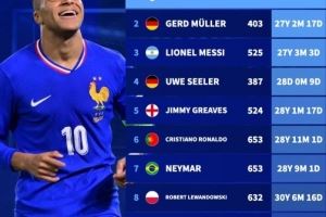 达成职业生涯400球球员年龄:姆巴佩最年轻,梅西第三,C罗第6